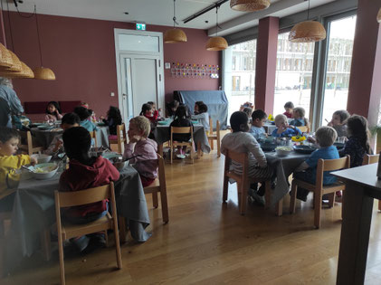 „Die hauseigene Kindertagesstätte „Findefüchse“ bietet 24 Plätze für Kinder von 3-6 Jahren, der Fokus liegt auf dem Thema gesunde Ernährung, denn das Mittagessen ist oft die einzige warme und gesunde Mahlzeit, die die Kinder zu sich nehmen. Dazu gehört auch, dass in Hochbeeten im Garten Gemüse angepflanzt wird. Statt alles im Supermarkt einzukaufen, lernen die jungen Menschen, wie lebendige Nahrung wächst und gedeiht, wenn man sich darum kümmert, erntet und zubereitet.